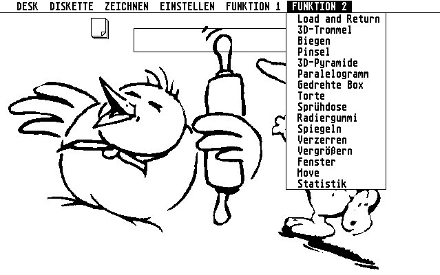 Pixel drawing program that leaves nothing to be desired. With 3D part - extensive drawing functions - numerous image and block formats etc. GDOS and Signum! fonts. Only works in ST-high! Supports almost all common printers: 9-/24-needles, ink and laser printers.