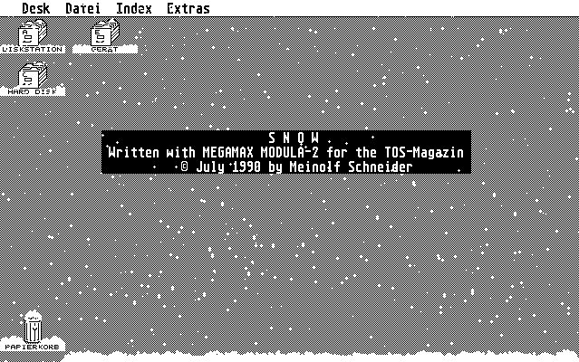 Resident gimmick program for Atari ST with monochrome monitor, where the desktop is shot and then falls down.