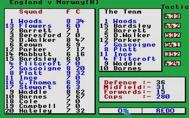 Another football management game similar to Football'88 by Budgie UK. This time you are manager of the English National side trying to achieve international glory. Involves a degree of tactical thought. A must for Football Manager addicts. -
