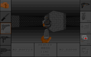 An impressive intro based around an archaelogical find in Cairo starts off this game. Once into the game proper, you realise that it's a DOOM clone running on your ST and a damned fine one too. OK so you don't get texture mapping or a choice of weapons and there's only one 'breed' of alien but it's the same basic concept. Your goal is to navigate the maze, blasting aliens as you go, and collect the three keys which open doors leading to deeper levels. To win the game you must collect all four computer disks hidden beyond those doors. Control is by joystick or keyboard and there's Map and Help features built in.