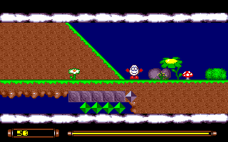 This is a children's platform game released in April 1997 to coincide with the UK ATARI shows organised by Goodmans Int PDL, The game needs one meg and is optimised for the ATARI STe but will work on a STFM but without the sampled sounds, This game is not compatible with Falcon or TT, but anything else up to and including a Mega STe should be alright. As a childrens game simplicity is a keyword, You find yourself in various enchanted lands where you must enhance your score by collecting Yellow Stars, Along the way you will meet baddies that in most cases you can jump on and get them out of harms way for a short time, Pressing objects will eventually reveal the existence of a Pink Star, it is advisable to find this before leaving the level